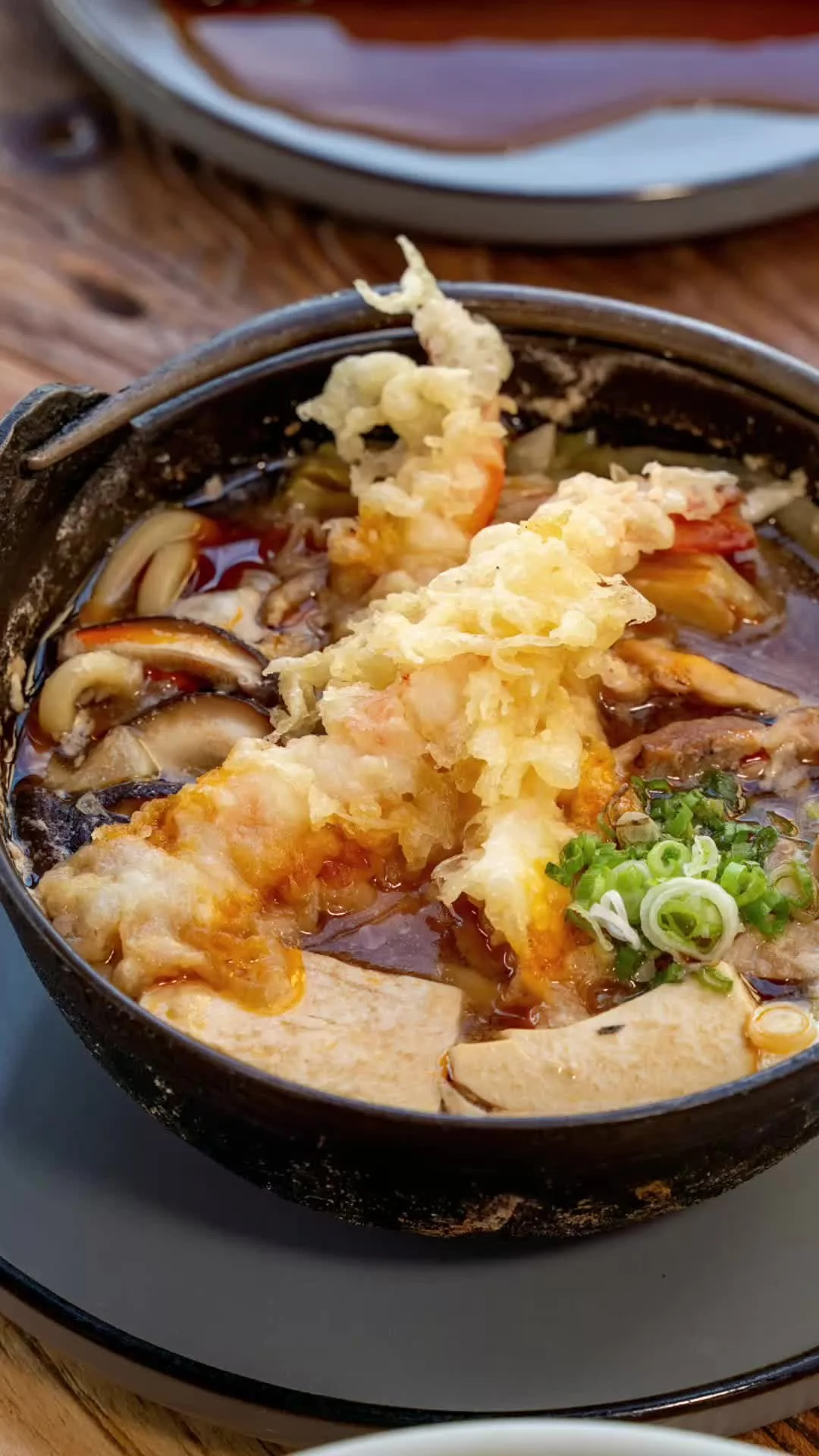 lightly battered pork, cooked w/ egg, onion, mushroom simmered in sauce